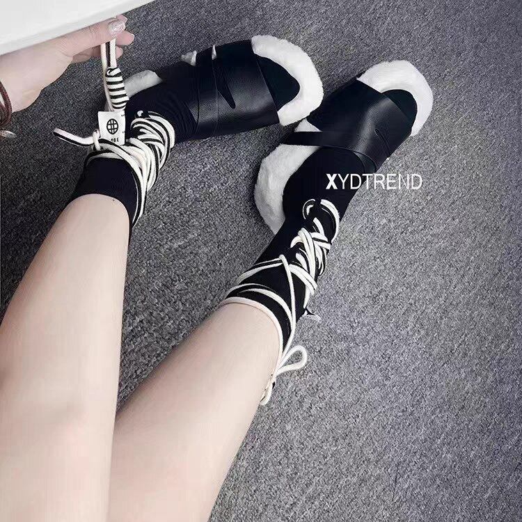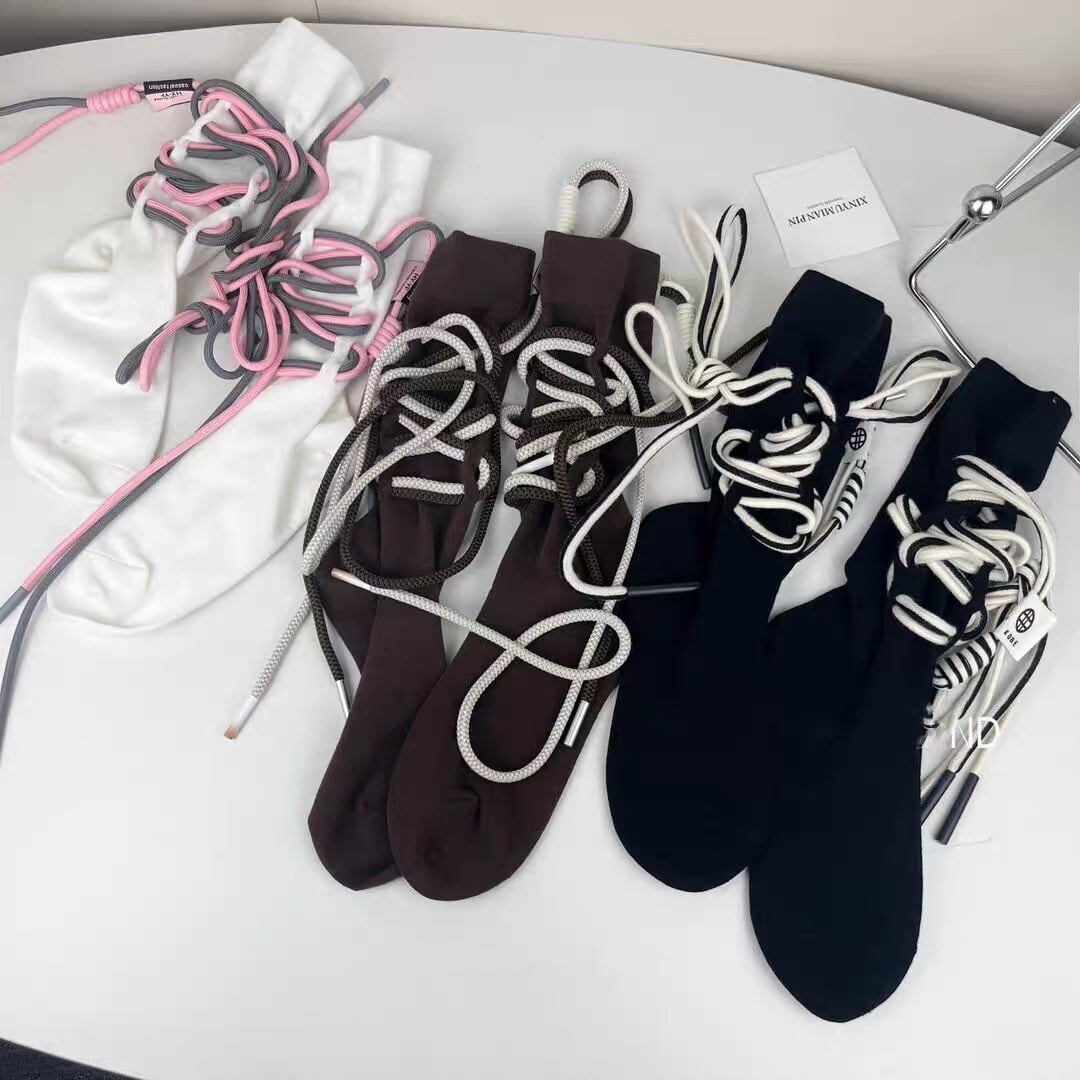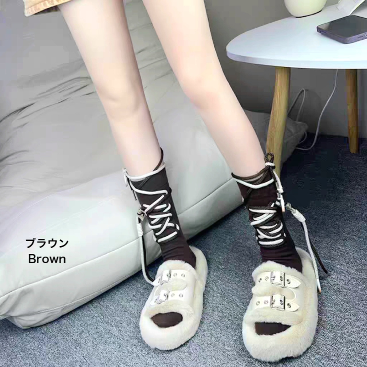 送料込 超可愛い 靴下 レディースソックス ストラップ靴下 ロング丈靴下 紐靴下 紐 ソックス クロスストラップソックス
